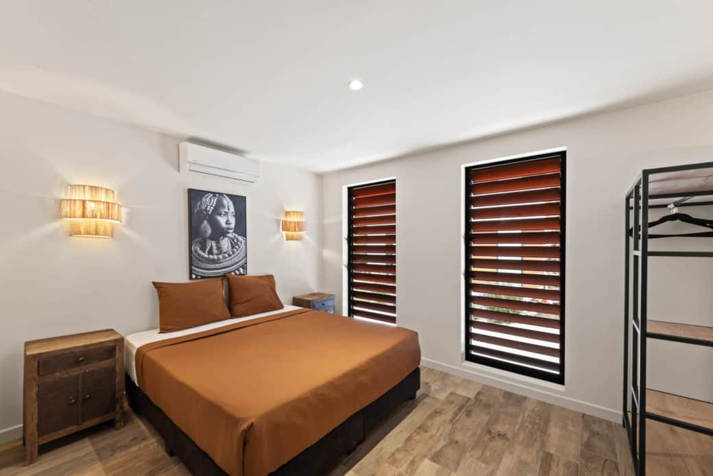 The bedroom features an ensuite bathroom and, of course, air conditioning to keep your nights cool.